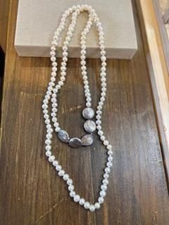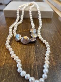 チェーン・ピン・タイプ SV925(燻し)、淡水パール、ラブラドライト