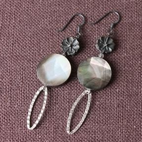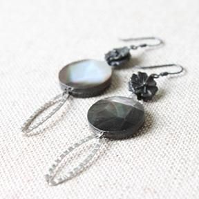 チェーン・ピン・タイプ SV925(燻し)、淡水パール、ラブラドライト