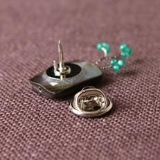 チェーンピアス SV925、キュービック、翡翠